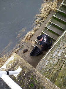 Dne 05.01.2021 v dopoledních hodinách, vyjížděla společná hlídka strážníků služby operačního zákroku městské policie a kynologické služby městské policie do ulice Revoluční, k budově Spolchemie Ústí nad Labem, a to z důvodu telefonického oznámení na tísňovou linku městských strážníků, kam neznámý oznamovatel operátorovi nahlásil, že se ve zmíněné ulici nachází nějaké zvíře, které by mohlo napadnou kolemjdoucí. Strážníci na místě zjistili, že se jedná o nutrii, kterou pomocí odchytové tyče odchytli. Vhledem k tomu, že na zvířeti nebyla patrna žádná viditelná zranění, odvezla hlídka nutrii k řece Labe, kde ji strážníci vypustili do volné přírody.