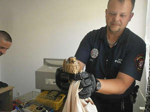 Dne 19.6.2014 v 15,16 hod., byla operačním střediskem městské policie vyslána hlídka strážníků do ulice V Oblouku, kde dle oznamovatele měl do bytu vlétnou nějaký dravý pták a usmrtit morče, které bylo zavřené v kleci. Strážníci na místě zjistili, že se jedná o poštolku, která do bytu vlétla otevřeným oknem, zřejmě za účelem hledání potravy. Dravec byl strážníky odchycen a po vzebrubné prohlídce zdravotního stavu poštolky, byla tato vypuštěna zpět do volné přírody.