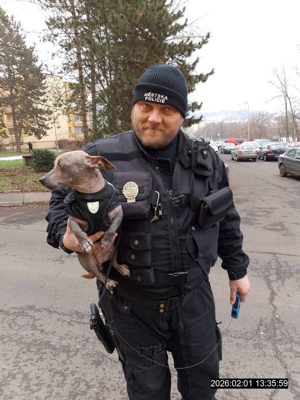 Dne 1.2.2026 v 13,30 hod., byl na žádost operačního střediska městské policie proveden výjezd strážníků do ulice V oblouku, kde mělo dojít k hospitalizaci nemocné ženy, která má v domácnosti malého staršího psa, o kterého se z důvodu její nemoci nemůže nikdo postarat. Hlídku proto zasahující zdravotní záchranná služba požádala o odchyt psa a následný převoz na městský útulek.