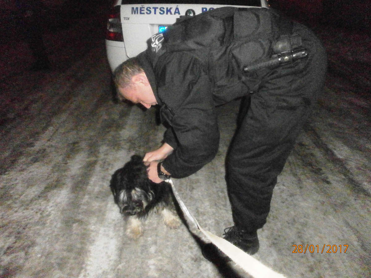 Dne 28.1.2017 v 17,30 hod., telefonoval na tísňovou linku městské policie oznamovatel, který operátorovi sdělil, že v ulici Sociální péče pobíhá opuštěný pes, který svým pohybem ohrožuje bezpečnost a plynulost silničního provozu a sám může přijít k úrazu. Strážníkům se na místě podařilo psa odchytit a poté byl pes odvezen do městského útulku pro opuštěná zvířata, kde byl předán do odborné péče.