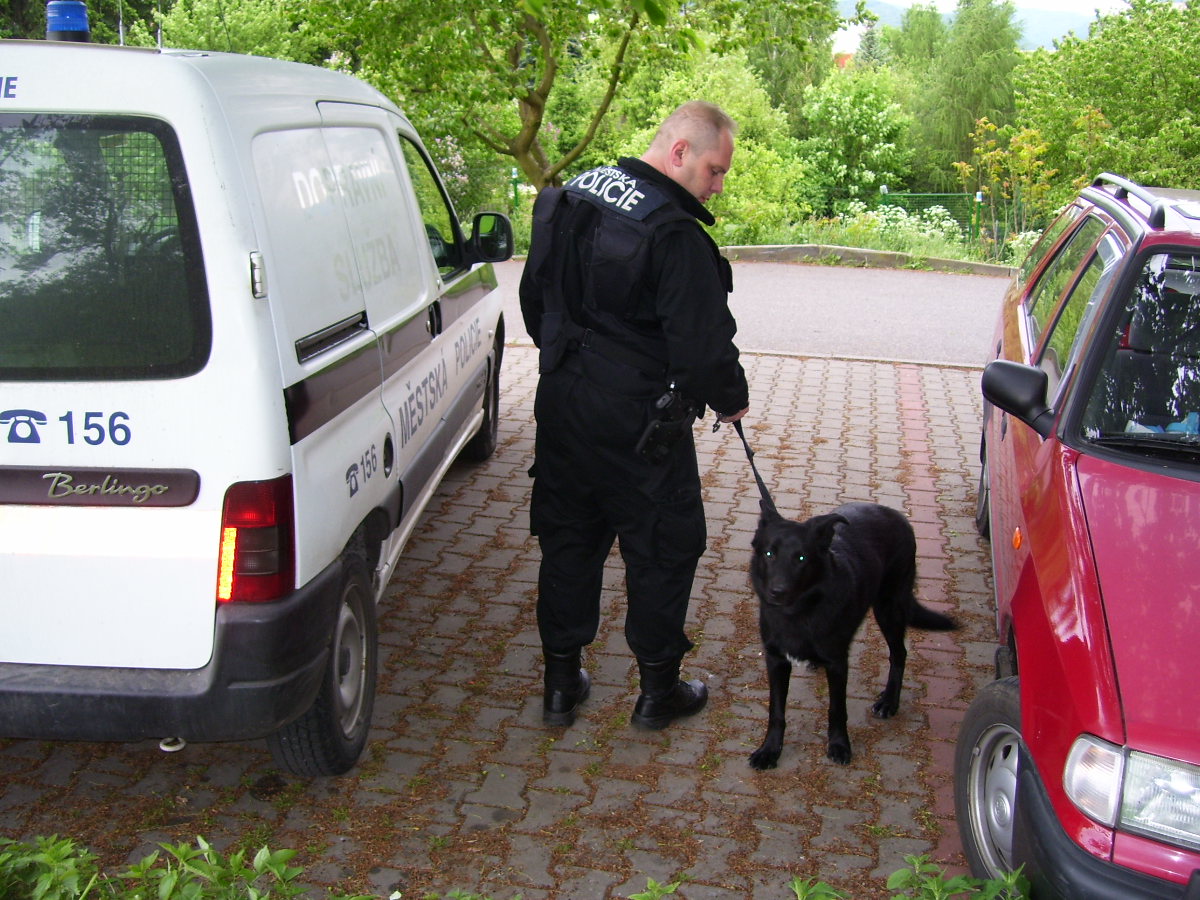 Dne 16.5.2014 v 08,30 hod., byla přivolána hlídka strážníků do ulice Žukovova, do vrátnice firmy Oleofin, kde se měl údajně nacházet velký černý pes, který neměl majitel. Jednalo se o dospělého vlčáka, který se zřejmě zaběhl svému majiteli, proto strážníci provedli jeho odchyt a psa převezli do městského útulku.
