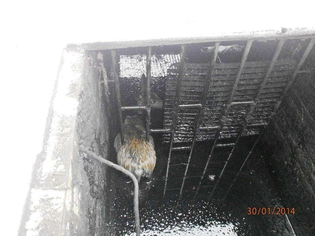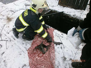 Dne 30.1.2014 v 13,40 hod., byl proveden výjezd strážníků do areálu továrny Tonasa, kde neznámý oznamovatel nahlásil propad srny do olejové nádrže. Na místě se hlídka strážníků pokusila zvíře z jímky vyprostit, ale vlastními silami se jim to nepodařilo, proto byli na pomoc přivoláni hasiči, kteří pomocí lezecké techniky srnu vyprostili. Po dohodě s městským útulkem pro zatoulaná zvířata byla srna odvezena do zmíněného útulku, kde se jí dostalo veterinárního ošetření.