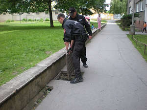 19.5. Na služebnu městské policie v Krásném Březně se dostavil Jiří S., který nahlásil ztrátu víka od kanálu před svým domem. Jmenovaný dále uvedl, že zmíněné víko se snaží u místní ubytovny Freedom rozbít neznámý člověk. Na místo byla vyslána hlídka strážníků, která v ulici U pivovarské zahrady zadržela Stanislava P.(1987), jenž se snažil víko rozbít velkými kameny. Strážníci jmenovanému víko odebrali a vrátili na místo, odkud pocházelo. Celý případ byl zadokumentován a předán příslušné přestupkové komisi k dořešení.