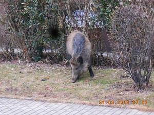 Dne 31.3.2018 v 07,35 hod., byl na žádost operačního střediska městské policie proveden výjezd strážníků do ulice Maková, odkud na tísňovou linku městské policie telefonoval oznamovatel, který operátorovi sdělil, že se ve zmiňované ulici pohybuje divoké prase. Strážníci divočáka spatřili na rozhraní ulic Maková - Šípková, kam byl přes operační středisko přivolán myslivec z příslušného mysliveckého sdružení Diana, který čuníka v parku Družba na bezpečném místě zastřelil.