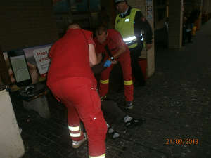 Dne 21.9. 2013 v 07,10 hod., prováděla hlídka strážníků pochůzkovou činnost v centru města, kde si v ulici Revoluční všimla na zemi ležet starší ženu, která se nacházela v silně podnapilém stavu a nebyla schopna pohybu ani komunikace. Z důvodu její silné opilosti byla na místo přivolána rychlá záchranná služba, která si dotyčnou ženu převezla do Masarykovy nemocnice k ošetření.
