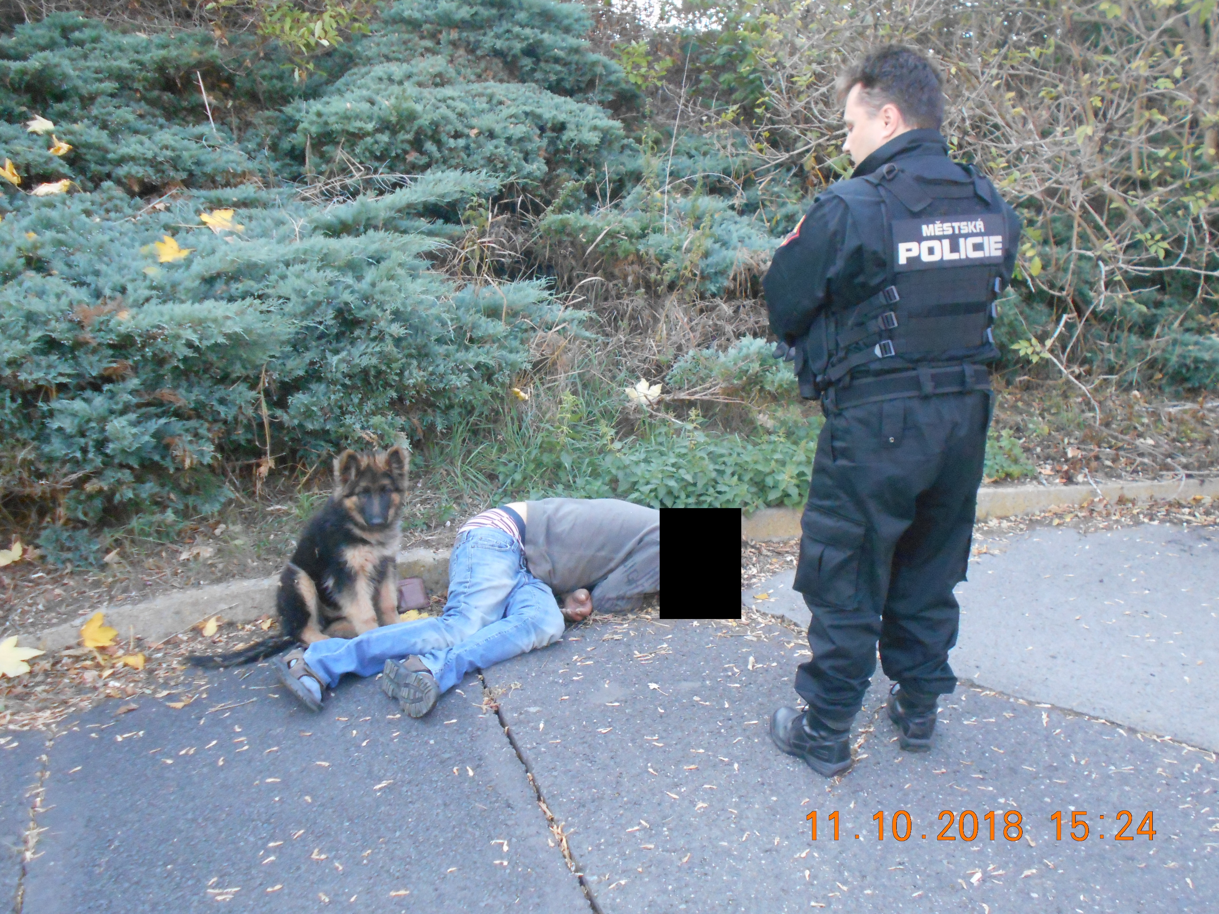 Dne 11.10.2018 v 15.20 hod,. byla na žádost operačního střediska městské policie vyslána hlídka strážníků do ulice Hoření, z důvodu telefonického oznámení na tísňovou linku městské policie, kde oznamovatel operátorovi nahlásil, že ve zmiňované ulici pod bývalým hotelem Máj, leží na zemi neznámý muž. Strážníci na místě zjistili, že dotyčný muž středního věku se nachází v silně podnapilém stavu, ale je při vědomí a se strážníky byl schopen komunikovat. Strážníci muže posadili na lavičku a vyčkali u něho až do doby, kdy byl dotyčný schopen se sám o sebe postarat. Vzhledem k tomu, že pán měl u sebe psa, kterého neměl na vodítku, a že požíval alkoholický nápoj v místech, kde to obecně závazná vyhláška města zakazuje, bylo s dotyčným sepsáno oznámení o spáchaném přestupku, které bude dořešeno u příslušného správního orgánu. Po řádném poučení přestupce se hlídka vrátila zpět k pochůzkové činnosti. V 16,45 hod., byla hlídka vyslána opět do ulice Hoření, kde dle oznámení občana měl na zemi ležet neznámý muž. Strážníci na místě zjistili, že se jedná o stejného muže, kterého kontrolovali před hotelem Máj. Rozdíl byl pouze v tom, že tentokrát byl dotyčný ve stavu, kdy nebyl díky své opilosti s hlídkou schopen ani komunikovat. Strážníci na místo přivolali zdravotní záchrannou službu, která si dotyčného odvezla do Masarykovy nemocnice k vyšetření. Dále byl k případu přivolán i psovod městské policie, který odvezl psa do městského útulku pro opuštěná zvířata, kde ho předal do péče příslušnému zaměstnanci tohoto zařízení.