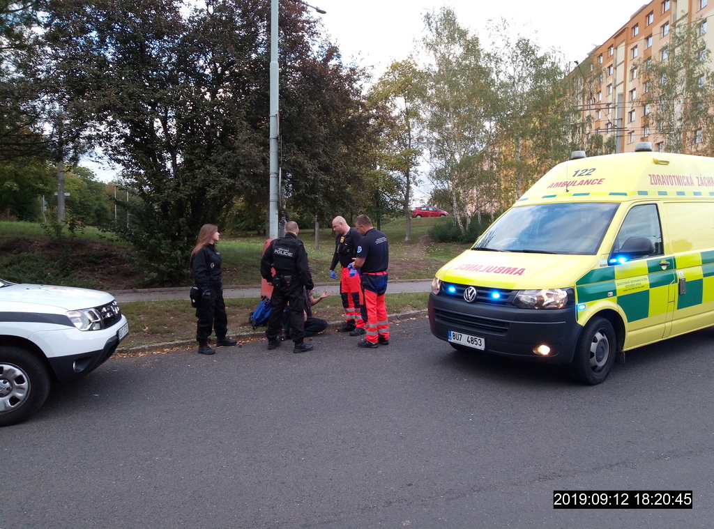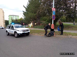 Dne 12.9.2019 v18.15 hod., byl na žádost operačního střediska městské policie proveden výjezd strážníků ke křižovatce ulic Jana Zajíce – Mírová, kde dle oznamovatele měl na zemi ležet bezvládně muž. Hlídka na místě zjistila dotyčného, který ležel na chodníku, měl krvácivé zranění na hlavě, a ze kterého byl cítit alkohol. Strážníci muže probudili a poskytli mu první pomoc. Když byl dotyčný při vědomí, tak strážníkům sdělil, že v opilosti upadl na zem a způsobil si zranění hlavy. Na místo hlídka přivolala zdravotní záchrannou službu, která si zraněného odvezla do Masarykovy nemocnice k dalšímu ošetření.