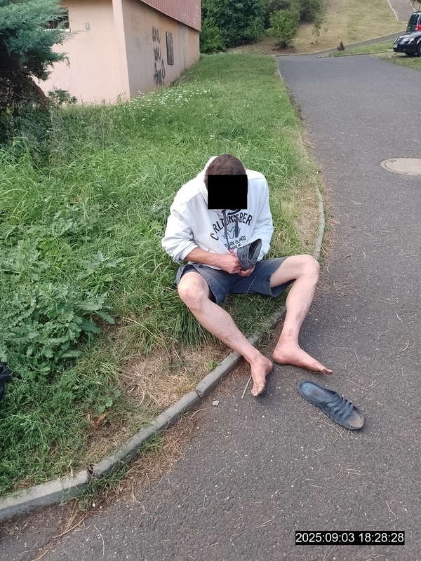 Dne 3.3.2025 v 19:30 hod., byl na žádost operačního střediska městské policie proveden výjezd strážníků do ulice Jizerská, kde dle oznamovatele se měl na zemi povalovat muž s batohem na zádech. Po příjezdu hlídky na místo byla zjištěna osoba, která z důvodu silné podnapilosti ležela na zemi, nemohla chodit a jen z těží komunikovala. Jednalo se muže středního věku, bytem Peruc. Z důvodu silné podnapilosti byla na místo přivolána zdravotní záchranná služba, která si dotyčného od strážníků převezla a převezla do Masarykovy nemocnice k vyšetření.