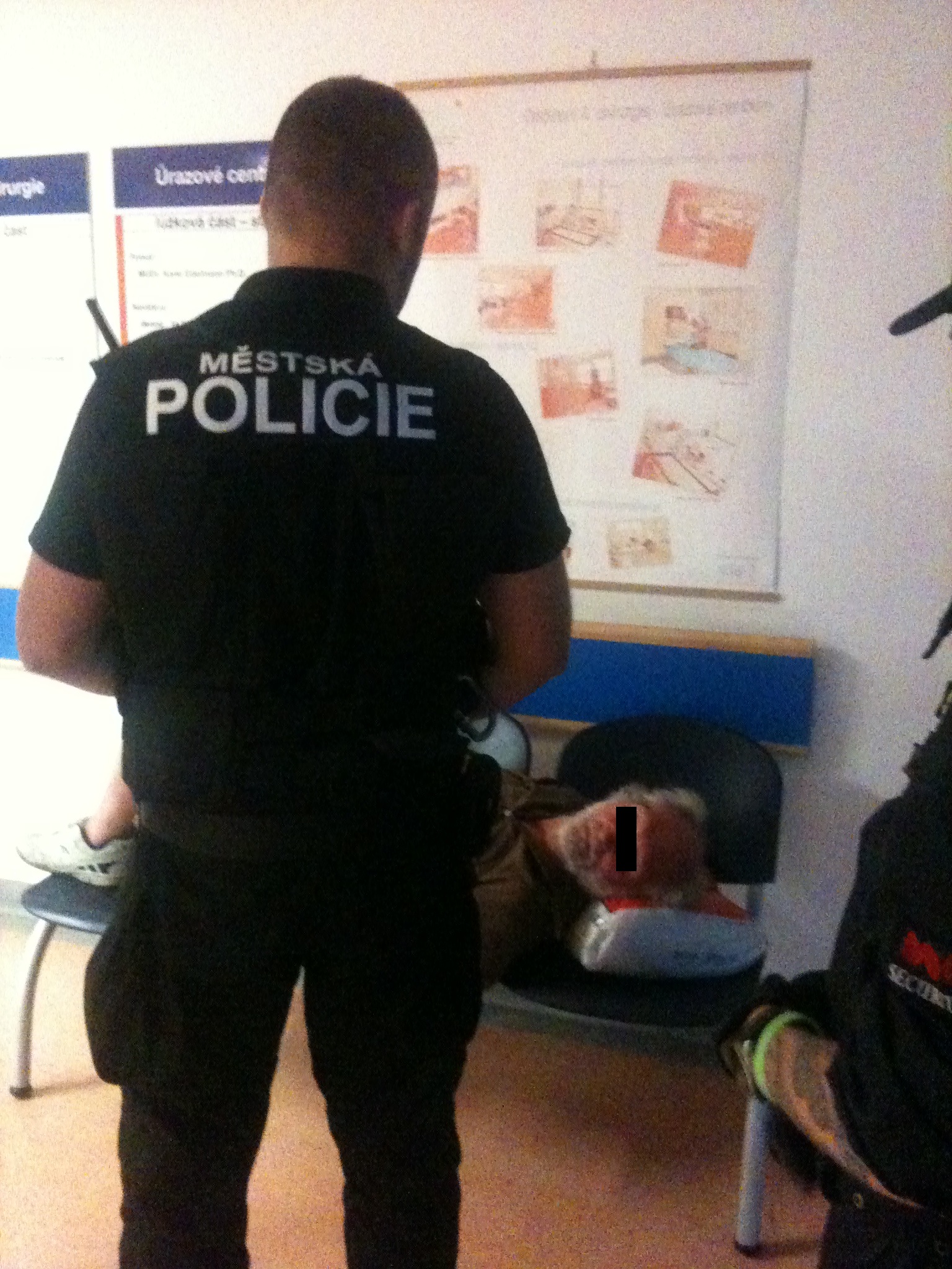 Dne 25.5.2014 v 20,55 hod., byl proveden výjezd strážníků do Masarykovy nemocnice, kde se měl na úrazové ambulanci nalézat opilec, který nechtěl nemocnici dobrovolně opustit. Strážníci na místě zjistili Antonína B.(1951), který v čekárně úrazové ambulance spal v podnapilém stavu na lavičce. Po probuzení byl jmenovaný z nemocnice vykázán.