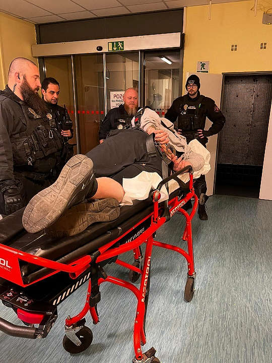 Dne 16.02.2023 v 19:00 hod., bylo na operační středisko městské policie přijato telefonické oznámení, ve kterém oznamovatel upozorňoval operátora na podnapilého agresivního muže, který leží v prostorách před OC Norma v ulici SNP. Dle oznámení měl být dotyčný agresivní na kolemjdoucí. Po příjezdu hlídky strážníků na místo byl na místě zjištěn silně podnapilý muž, ležící na zemi. Bylo na něm viditelné, že díky svému podnapilému stavu již několikrát upadl, protože měl oděrky na rukou, a protože si na pivo vyrazil jen na lehko v kraťasech, tak měl i odřená kolena. Muž nebyl schopen ovládat své chování, nemohl vstát ze země a udržet se na nohou. Z těchto důvodů strážníci na místo přivolali zdravotní záchrannou službu k provedení lékařského vyšetření, zda je schopen převozu na protialkoholní stanici. Ve vozidle zdravotníků se podnapilý agresivní muž pokusil fyzicky napadnout strážníka, který pomáhal zdravotníkům při upoutávání muže na lůžko uvnitř sanitního vozu. Při opakovaném pokusu fyzicky napadnout strážníka, byly proti dotyčnému použity donucovací prostředky a nakonec útočník skončil ve služebních poutech. Po této zkušenosti byl hlídkou proveden doprovod vozidla zdravotníků do Masarykovy nemocnice k vyšetření opilého muže. Zde bylo lékařským personálem konstatováno, že opilec je schopen převozu do protialkoholní záchytné stanice v Teplicích, kam byl také převezen sanitkou městské policie.