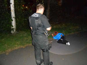 V brzkých ranních hodinách byla hlídka strážníků přivolána do ulice Železničářská, odkud na tísňovou linku městské policie telefonoval oznamovatel, který operátorovi sdělil, že se ve zmíněné ulici nalézá na vozovce ležící neznámý člověk. Strážníci na místě zjistili, že se jedná o Roberta M.(1967), který není zraněn, ale nalézá se v podnapilém stavu a díky své opilosti usnul na vozovce, kde hrozilo jeho zranění od projíždějících vozidel. Strážníci jmenovaného probudili a po jeho částečném vystřízlivění byl dotyčný z místa vykázán.