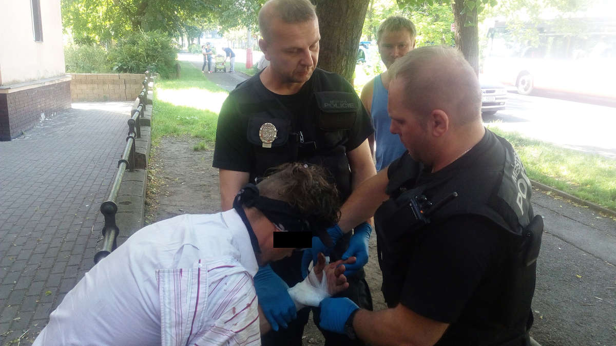 V ulici Klíšská strážníci ošetřili zraněného muže.