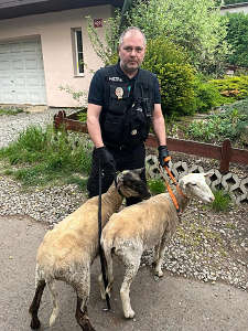 Na operační středisko městské policie telefonoval oznamovatel, který operátorovi sdělil, že v ulici Karafiátova se volně pohybují ovce po vozovce a mohlo by zde dojít k dopravní nehodě. Na místo byla vyslána hlídka strážníků, která zjistila, že se zde pohybují dvě ovce, které díky volnému prostoru nebude snadné odchytit. Hlídka kontaktovala majitele zvířat a informovala ho o celé události. Dále bylo hlídkou strážníků společně s místními obyvateli provedeno zajištění únikových cest až do příjezdu majitele. Následně se na místo dostavil majitel ovcí, který hlídce sdělil, že ovce vlastní teprve dva dny a nemá ani potřebné vybavení pro jejich odchyt, proto byl kontaktován psovod městské policie s odchytovým vybavením. Do jeho příjezdu se hlídce podařilo ovce odchytit (na vodítka) a následně je umístit do vozidla (dodávka majitele ovcí), který se na místo dostavil. Dále pak byl hlídkou proveden doprovod dotyčného i se zvířaty do místa bydliště, kde hlídka pomohla ovce vrátit zpět do výběhu. Následně strážníci poučili majitele, aby pozemek zajistil proti dalším únikům ovcí z pozemku.