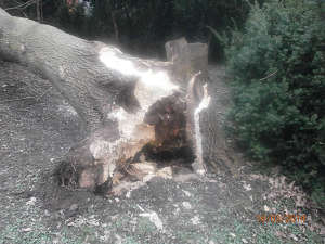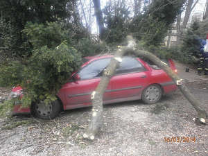 Dne 16.3.2014 v 15,30 hod., byla na podnět neznámého oznamovatele vyslána hlídka strážníků do ulice Jana Zajíce, kde došlo vlivem silného poryvu větru k pádu stromu na zaparkovaný osobní automobil. Na místo byla přivolána i Policie ČR a hasiči, kteří spadlý strom rozřezali a odklidili. Strážníci během celé akce zabezpečovali místo zásahu proti vstupu nepovolaných osob.