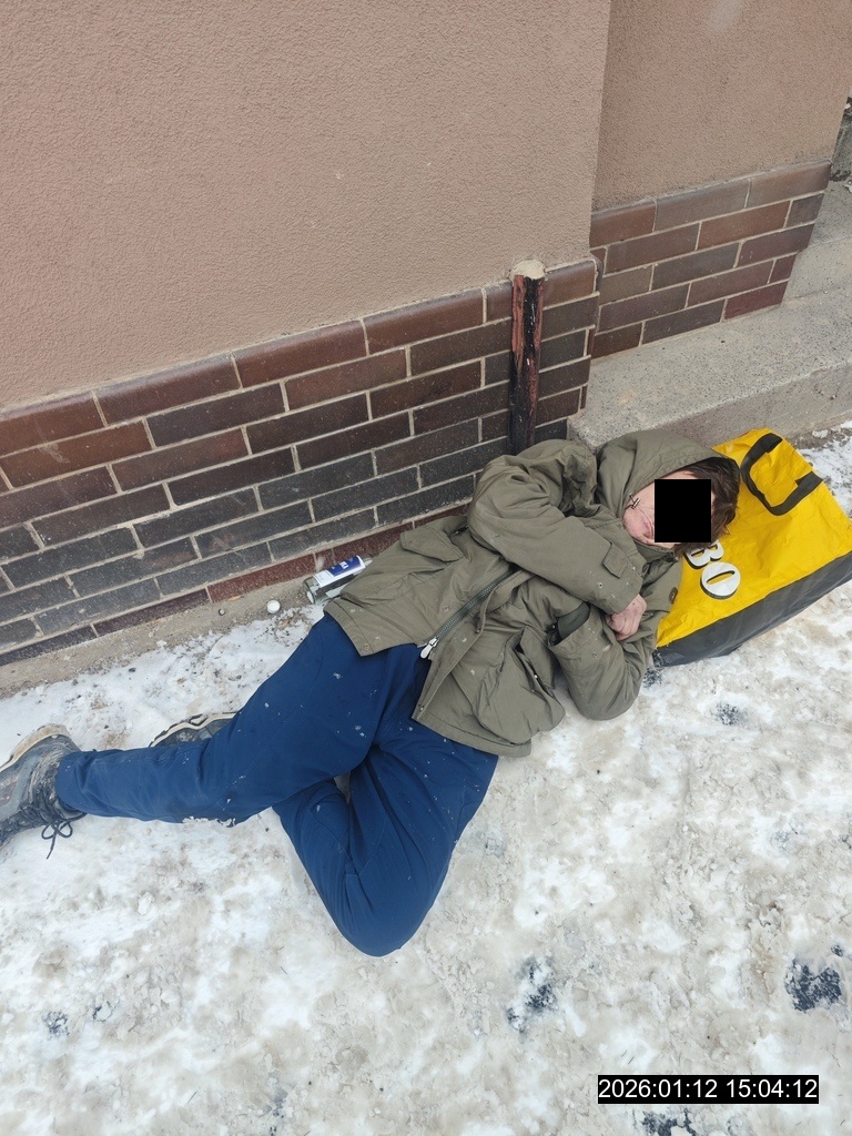 Dne 12.1.2026 v 14,55 hod., byl na žádost operačního střediska městské policie proveden výjezd strážníků do ulice Růžový palouček, odkud na tísňovou linku městské policie telefonovat oznamovatel, který operátorovi sdělil, že ve zmiňované ulici leží na zemi neznámý člověk. Strážníci na místě zjistili muže středního věku, který se nalézal v silně podnapilém stavu. Vedle sebe měl prázdnou lahev od alkoholu (vodka). Dotyčný přerývaně dýchal a nebyl schopen samostatného pohybu. Strážníci muže položili do stabilizované polohy a na místo přivolali zdravotní záchrannou službu. Po jejím příjezdu pomohla hlídka zdravotníkům naložit opilého muže do sanitního vozu, kterým byl dotyčný převezen do Masarykovy nemocnice k vyšetření.