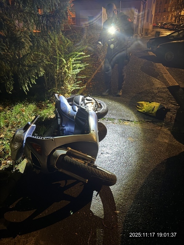 Dne 17.11.2025 v 18:53 hod., přijalo operační středisko městské policie oznámení od neznámého občana, který operátorovi sdělil, že v ulici Pasteurova se neznámý muž pokouší odcizit motocykl zn. Honda. Majitel měl tento skútr zaparkovaný v uazvřené kóji v objektu, do které pachatel vnikl a vytlačil z ní motocykl, který měl v úmyslu odcizit. Namísto ihned vyrazili strážníci ze skupiny operačního zákroku, kteří zde zadrželi muže středního věku, který se pokusil motocykl odcizit. Muž si na místo dokonce přinesl i vlastní helmu, aby v případně úspěšné krádeže nevzbudil podezření. Šetřením bylo zjištěno, že dotyčný měl v úmyslu dotlačit skútr do ulice Londýnská, kde na něho měla čekat dodávka, do které by motocykl s pomocí komplice naložil. Zmiňovaná dodávka na místo činu „pobertu“ dovezla a poté z místa odjela. Vzhledem k těmto poznatkům byla na místo přivolána hlídka Policie ČR, která si celý případ od strážníků převzala k dalšímu šetření.