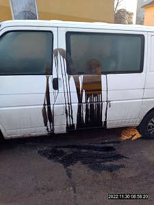 Dne 30.11.2022 v 08.45 hod., byla vyslána hlídka strážníků do ulice V Kutišti, odkud na tísňovou linku městské policie telefonoval oznamovatel, který operátorovi sdělil, že zde parkuje vozidlo VW, které bylo polito olejem, který následně stékal na nezpevněný povrch pod vozidlo. Hlídka na místo přivolala hasiče, kteří olejovou skvrnu pod vozidlem ekologicky zlikvidovali. Poté se strážníci snažili zkontaktovat majitele předmětného vozidla a o celé záležitosti ho informovat, ale to se jim ani přes veškerou snahu nepodařilo.