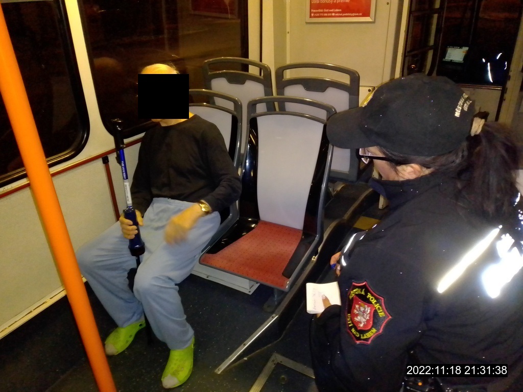 Dne 18.11.2022 ve 21.15 hod., byla na žádost operačního střediska městské policie provedena kontrola zastávky MHD Mírová, kde dle oznámení, měl čekat řidič trolejbusu se zmateným mužem. Na místě strážníci zjistili oznamovatele, který hlídce sdělil, že do vozu nastoupil neznámý muž, oblečen jen v lehkém oblečení a pantoflích, což mu přišlo divné vzhledem k tomu, že venkovní teplota klesá pod bod mrazu. Hlídka ve voze sedícího muže oslovila a z jeho sdělení nabyla přesvědčení, že tento zmatený senior trpí zřejmě stařeckou demencí. Po delším rozhovoru hlídka zjistila, že se jedná o muže bytem Ústí nad Labem. Vhledem k mrazivému počasí byl dotyčný strážníky posazen do služebního vozidla a dále mu bylo nabídnuto lékařské ošetření, které senior odmítl. Následně bylo zjištěno, že muž odešel z domova a klíče zapomněl uvnitř bytu. Z registru obyvatel hlídka zjistila telefonní kontakt na jeho dceru, která po domluvě strážníkům sdělila, že klíče od bytu jejího otce má, ale může přijet nejdříve cca za 1,5hod., neboť se nachází v Klášterci nad Ohří, ale telefonicky se právě domluvila s jeho sousedkou, která souhlasila s tím, že se do jejího příjezdu o otce postará. Té byl také senior hlídkou předán.