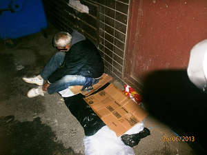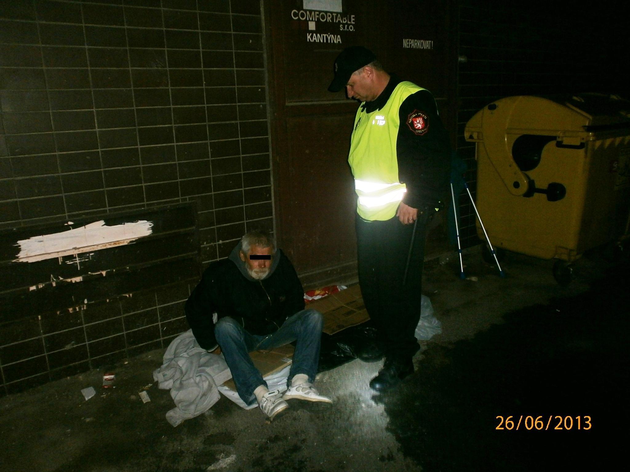 Dne 26.06.2013 v 00.20 hodin, prováděla hlídka strážníků kontrolní činnost v ulici Zámečnická, kde zjistila bezdomovce, který nebyl schopen samostatné chůze. Jednalo se o Ladislava H.(1950), který měl zaveden umělý vývod k vylučování, proto strážníci přivolali na místo rychlou záchrannou službu, která si dotyčného odvezla do Masarykovy nemocnice k vyšetření.