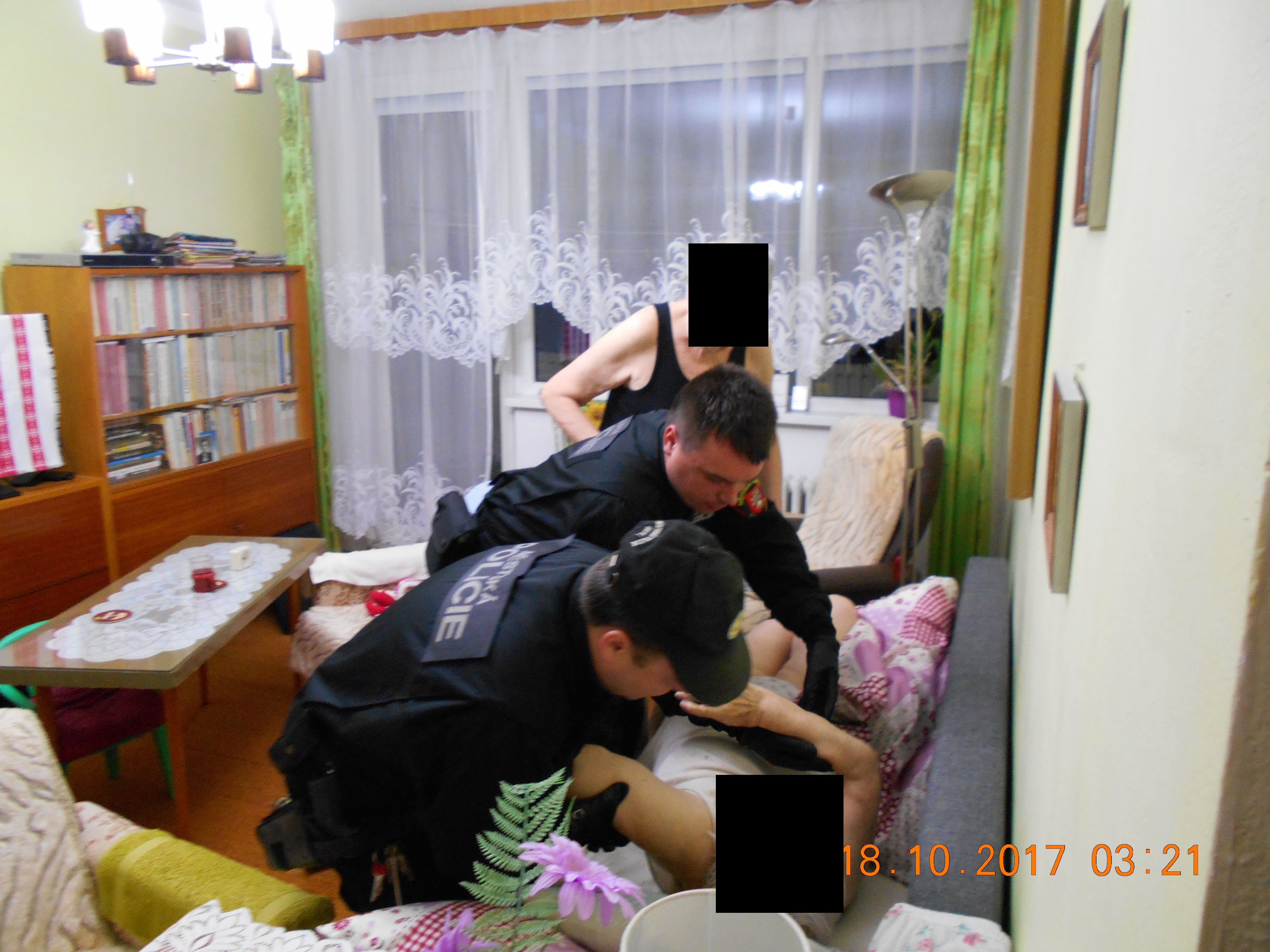 V ulici Jizerská pomáhali strážníci starší ženě, která se bez cizí pomoci nemohla dostat na postel.