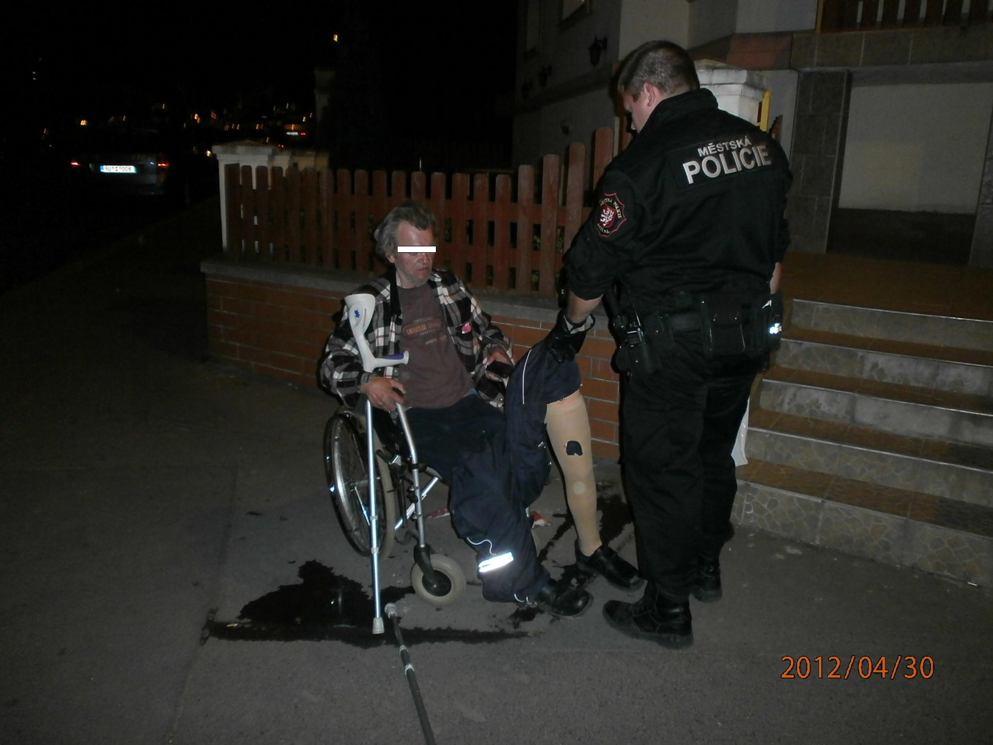 30.4.2012 oznámil na tísňovou linku „156“ neznámý občan, že v ulici Masarykova leží na zemi neznámý muž, který je zřejmě tělesně postižený neboť leží vedle invalidního vozíku. Dále neznámý uvedl, že postižený je zřejmě opilý. Na místo byla ihned vyslána hlídka městských strážníků, která neznámému poskytla první pomoc, posadila ho do vozíku a přivolala rychlou záchrannou službu. Šetřením bylo zjištěno, se jedná o Pavla K.(1952), který strážníkům sdělil, že dostal epileptický záchvat a že se na nic nepamatuje. Strážníci s jmenovaným setrvali na místě až do příjezdu RZS, která postiženého převezla do Masarykovy nemocnice.