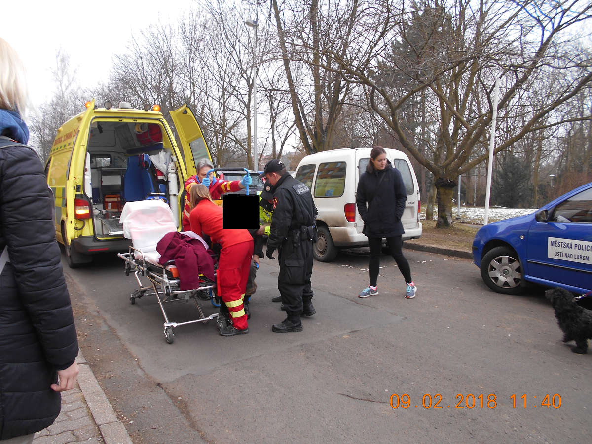 Dne 9.2.2018 v 10,15 hod., byla na žádost operačního střediska městské policie vyslána hlídka strážníků do ulice Zvonková, odkud na tísňovou linku městské policie telefonoval oznamovatel, který operátorovi sdělil, že jeho sousedka si nevyzvedává obědy, které jí vozí stravovací firma a on má tím pádem obavy o její zdravotní stav. Oznamovatel dále uvedl, že předešlý den v bytě dotyčné neustále poštěkával její pes. Strážníci se na místě na uvedenou seniorku nemohli dozvonit a na klepání na dveře nikdo nereagoval. Z těchto důvodů byl hlídkou kontaktován syn zmíněné seniorky, kterého na místo přivezli strážníci. Vzhledem k tomu, že byt byl uzamčen zevnitř a klíče byly zastrčeny v zámku, nešlo se do bytu dostat, proto byl na místo přivolán zámečník, který zámek otevřel. Po vstupu hlídky do bytu byla na posteli zjištěná žena, která téměř nekomunikovala, jen si stěžovala na silné bolesti hlavy. Z tohoto důvodu byla k seniorce přivolána zdravotní záchranná služba, která si ženu odvezla do Masarykovy nemocnice k vyšetření. Po dohodě s pracovníky městského útulku pro opuštěná zvířata, odvezli strážníci zmiňovaného psa do tohoto zařízení, kde bude umístěn do doby, než se o něho bude moci postarat jeho majitelka.