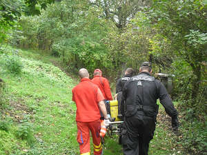 Dne 7.10.2017 v 14,45 hod., telefonovali na tísňovou linku městské policie pracovníci ze zdravotní záchranné služby, kteří operátora požádali o pomoc při nakládání pacientky, kterou postihla mozková příhoda. Hlídka strážníků vyjela do ulice Peškova, do místní zahrádkářské kolonie, kde na ni čekali zdravotníci a společnými silami naložili ženu na nosítka a odnesli ji do přistavené sanitky.