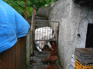 Dne 24.5.2016 v 15,20 hod., telefonoval na tísňovou linku městské policie oznamovatel, který operátorovi sdělil, že v ulici Pod Svahem se má nacházet zřejmě poraněná kráva. Na místo byla vyslána hlídka strážníků, která zde zjistila, že zvíře spadlo do betonového schodiště, které je umístěno pod úrovní terénu a tvoří koryto, ze kterého strážníci vlastními silami nebyli schopni nebohé zvíře vyprostit. Vzhledem k této situaci byli na místo přivoláni hasiči, kteří mají pro tyto případy odpovídající techniku a společně se strážníky krávu vyprostili a vytáhli na pozemek domu. Ke zraněnému zvířeti byl posléze přivolán i veterinář, kterého zajistil majitel krávy.
