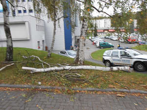 Dne 7.10.2017 v 16,50 hod., byl na žádost operačního střediska městské policie proveden výjezd strážníků do ulice Masarykova k zimnímu stadionu, odkud telefonoval oznamovatel, který operátorovi sdělil, že se zde nachází strom, který je nalomený, a který ohrožuje nejen kolemjdoucí, ale i provoz na vozovce. Strážníci ze skupiny operačního zákroku na místě strom pokáceli a odklidili ho mimo vozovku a chodník.