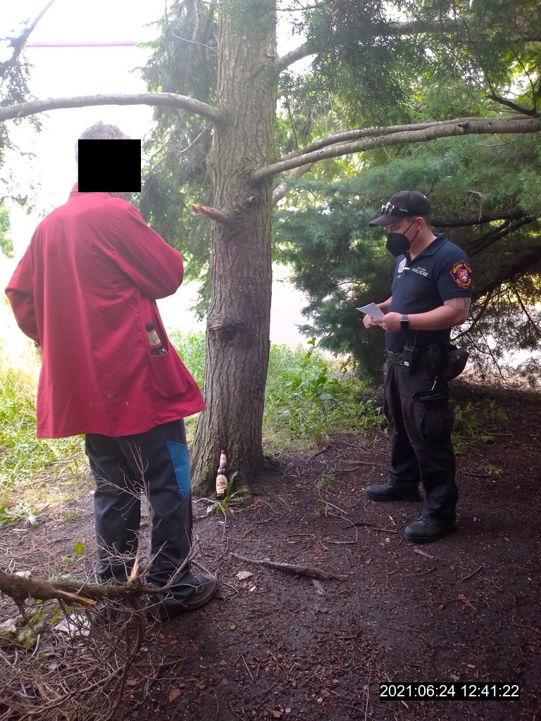 Dne 24.6.2021 ve 12.41 hod., prováděla hlídka strážníků kontrolní činnost v obvodu Severní Terasy, kde v ulici Stříbrnická ( ve křoví u České pošty ) narazila na muže středního věku, který na veřejném prostranství konzumoval alkoholický nápoj v místech, kde je tato konzumace zakázána veřejnou vyhlášku města. Za tento prohřešek mu strážníci vyměřili pokutu, kterou přestupce na místě hotově zaplatil.