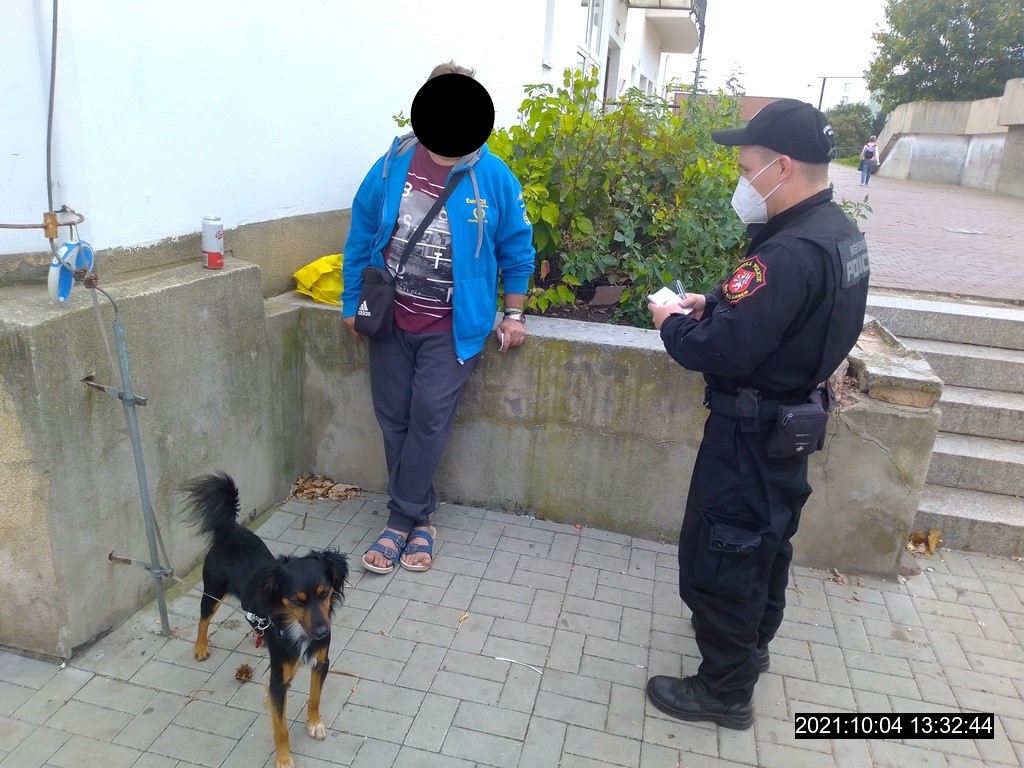 Dne 4.10.2021 ve 13.30 hod., při kontrolní činnosti v obvodu Severní Terasy byl v ulici Kmochova řešen muž středního věku, který porušil závaznou vyhlášku města, kdy v místě, kde to vyhláška zakazuje, konzumoval na veřejném místě alkohol. Strážníci po řádném poučení udělili dotyčnému blokovou pokutu, kterou muž na místě zaplatil. Hlídka poté pokračovala v pochůzkové činnosti, když v ulici Poláčkova narazila na bezdomovce, který se přehraboval v kontejneru na domovní odpad a na zemi po sobě zanechal nepořádek. Strážníci muže donutili nepořádek po sobě uklidit a po řádném poučení ho z místa vykázali.