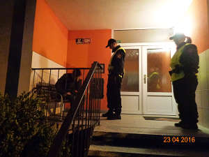 Dne 23.04.2016 v 04.55 hod., byla na žádost operačního střediska městské policie vyslána hlídka strážníků do ulice SNP, kde se dle telefonického oznámení na tísňovou linku městské policie někdo násilím dobývá do domu. Strážníci na místě zadrželi muže, který na dotaz hlídky co zde provádí odpověděl, že zde bydlí u kamaráda a nemá klíče od vchodu. Šetřením bylo zjištěno, že se jedná o Karla H.(1988), bytem Krupka. Při ohledání vchodových dveří bylo strážníky zjištěno poškození těchto dveří a škoda, která vznikla protiprávním jednáním jmenovaného se jevila jako nikoli nepatrná. Vzhledem k těmto okolnostem byla na místo přivolána Policie ČR, která si celý případ převzala k dořešení.