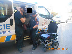 Dne 24.7.2018 v 17,15 hod., telefonoval na tísňovou linku městské policie muž, který operátorovi nahlásil, že je odkázán na invalidní vozík, u kterého se mu v tuto chvíli vybila baterie, a že se nachází v ulici Výstupní u horního vchodu do ZOO. Po tomto sdělení byla na místo vyslána hlídka strážníků, která na místě zjistila, že informace se zakládá na pravdě. Vzhledem k rozměrům elektrického vozíku si strážníci přivolali k postiženému vozidlo zn. Transit, do kterého byl dotyčný strážníky odnesen a transportován do místa jeho bydliště.