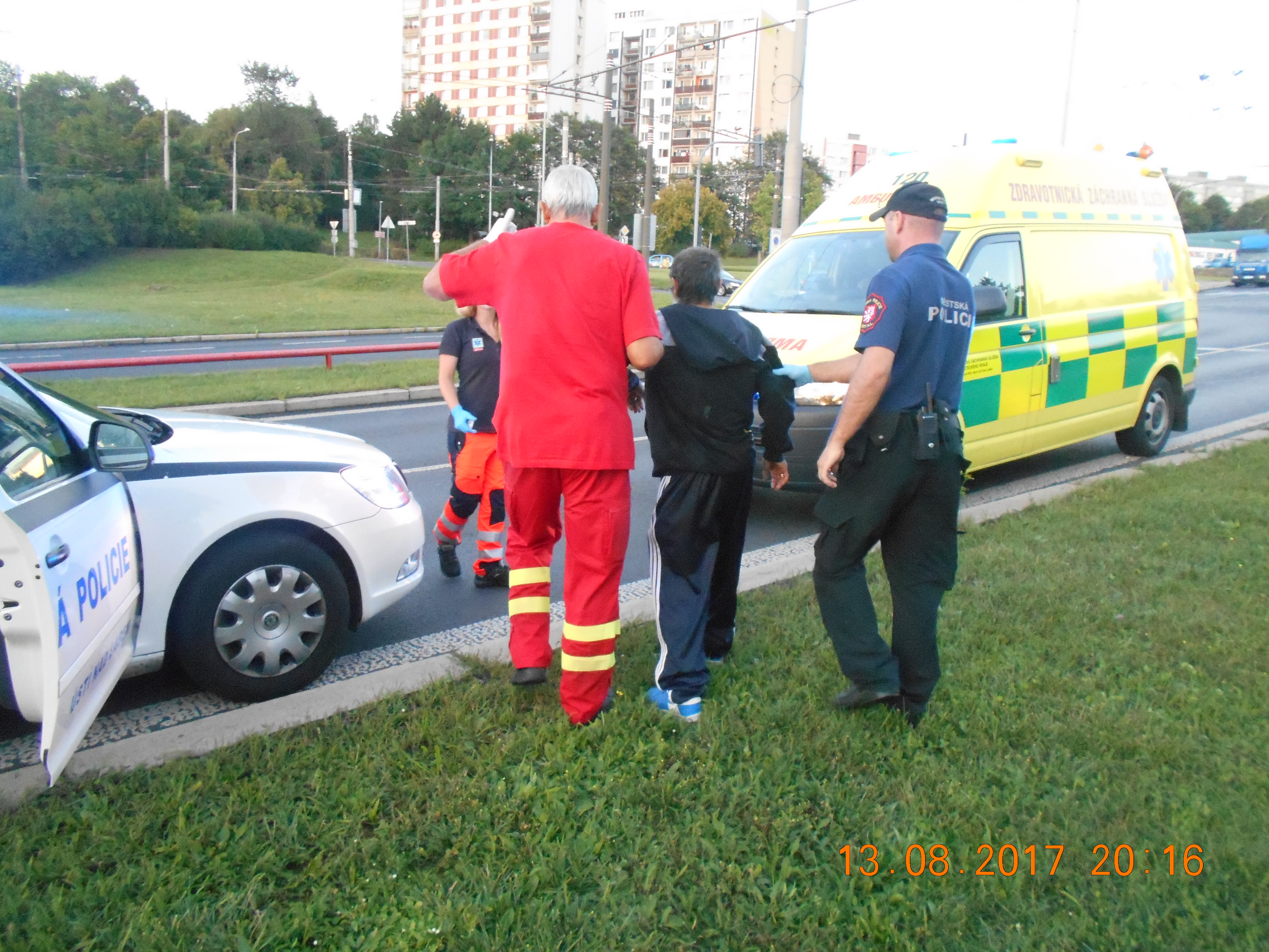 Dne 13.8.2017 v 20,00 hod., telefonoval na tísňovou městské policie oznamovatel, která operátorovi sdělil, že v ulici Sociální péče leží na zemi neznámý muž. Strážníci muže nalezli naproti NC – Billa. Ten si hlídce stěžoval na silnou nevolnost a bolesti hlavy. Šetřením bylo zjištěno, že se jedná o Roberta M.(1967), kterému strážníci poskytli první pomoc a na místo přivolali zdravotní záchrannou službu, která si dotyčného muže odvezla do Masarykovy nemocnice k dalšímu ošetření.