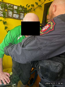 Dne 15.10.2024 v čase 10:43 hod., byla na žádost operačního střediska městské policie vyslána hlídka strážníků do ulice Šrámkova, odkud volal přes SOS tlačítko - SeniAngel muž vyššího věku, který spadl na zem a bez cizí pomoci se sám nemohl zvednout. Klíče od bytů lidí, kteří toto bezpečnostní tlačítko vlastní, mají strážníci na svých příslušných služebnách k dispozici. Hlídka na místě zjistila seniora, který v kuchyni ležel na zemi a při pádu si přivodil krvácivé zranění obočí nad pravým okem. Přítomná hlídka provedla u dotyčného prvotní ošetření a na místo přivolala zdravotní záchrannou službu. Ta si zraněného muže od strážníků převzala poskytnutí první pomocia odvezla do Masarykovy nemocnice k dalšímu ošetření.
