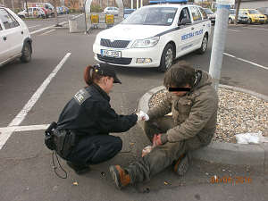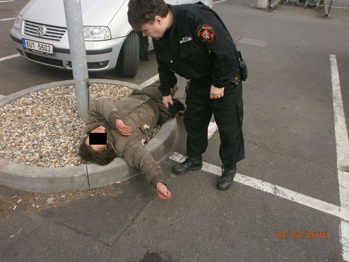 Dne 4.4.2016 v 15,45 hod., byla na žádost operačního střediska městské policie vyslána hlídka strážníků na parkoviště obchodního centra Albert, odkud na tísňovou linku městské policie telefonoval oznamovatel, který operátorovi sdělil, že na zmíněném parkovišti leží mezi vozidly člověk, který se nehýbe a je zřejmě zraněn. Strážníci na místě nalezli spícího muže, vedle kterého se nacházela láhev s pivem. Hlídka muže probudila, ale ten díky své silné podnapilosti nebyl schopen se strážníky komunikovat. Šetřením bylo zjištěno, že se jedná o Viléma D.(1989), bytem Ústí nad Labem. Při zjišťování totožnosti a řešení celé situace jmenovaný úmyslně rozbil o obrubník láhev s pivem, která ležela vedle něho a tím si přivodil řezné poranění na levé ruce v oblasti dlaně prstů. Dotyčnému muži byla strážníky ihned poskytnuta první pomoc a na místo byla přivolána záchranná zdravotní služba, která si zraněného odvezla do Masarykovy nemocnice k dalšímu ošetření.