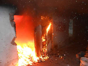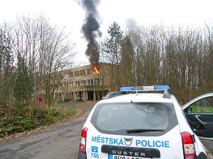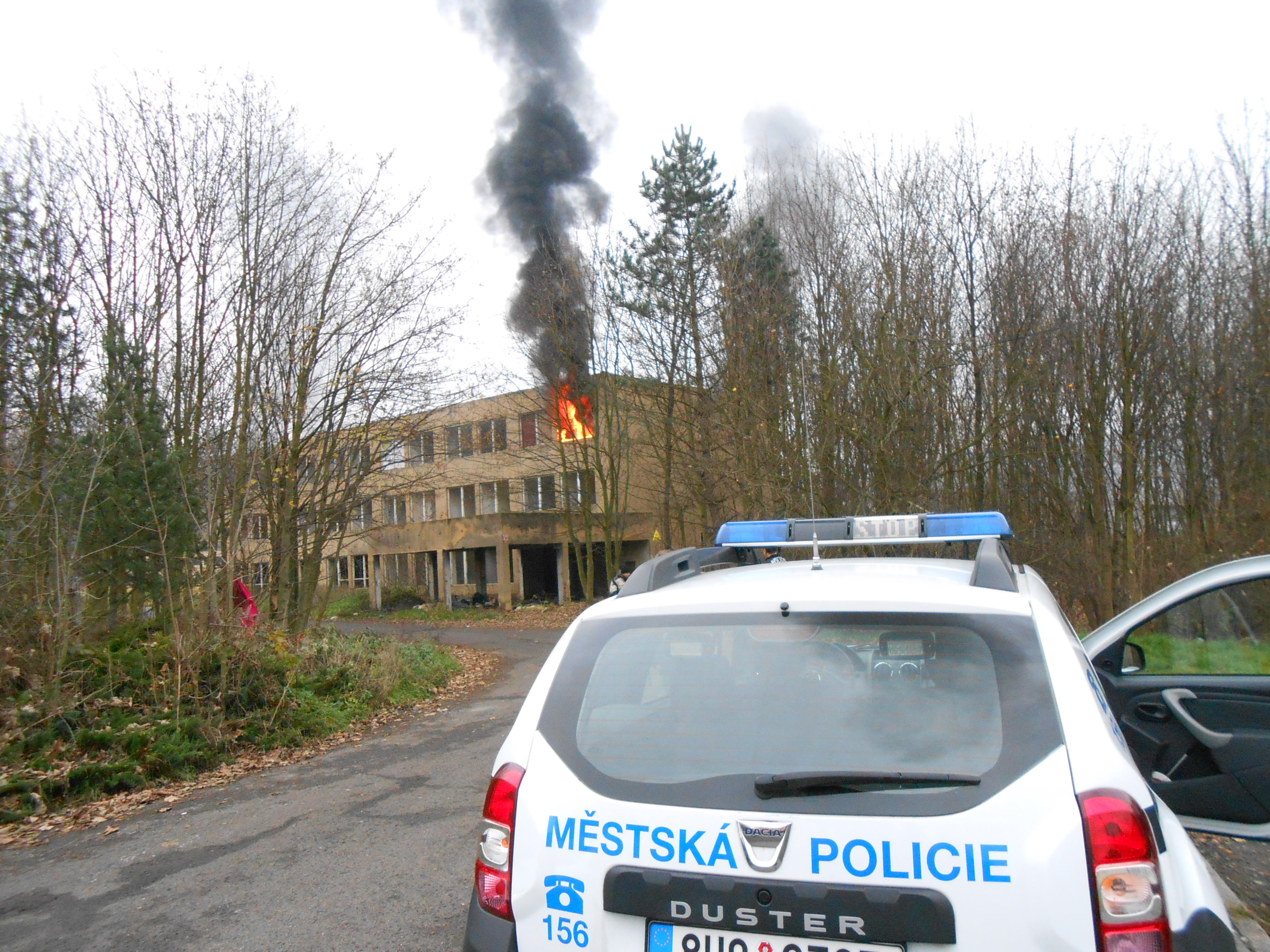 Dne 7.12.2014 v 10,05 hod., prováděla hlídka strážníků kontrolní činnost v obvodu Neštěmice, kde si v ulici Neštěmická všimla požáru správní budovy bývalého zahradnického podniku. Na místo se dostavila i hlídka Policie ČR, která společně se strážníky provedla kontrolu celé budovy. Od muže, který stál před budovou hlídka zjistila, že uvnitř se zřejmě nacházejí ještě další osoby. Strážníci s policisty v budově zjistili bezdomovce Miroslava H.(1978) a Petra G.(1978), které z hořící budovy společně evakuovali. Na místo byli přivoláni hasiči, kteří požár uhasili.