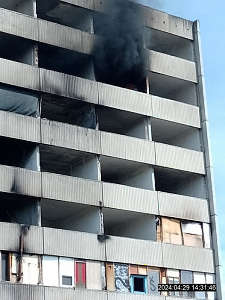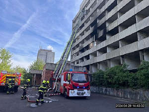 Dne 29.4.2024 ve 14:30 hod., prováděla hlídka strážníků pochůzkovou činnost v ulici Krušnohorská, kde byl hlídkou strážníků spatřen černý stoupající dým, vycházející z bývalého hotelu Máj. Strážníci se přesunuli do ulice Hoření 15, kde byl zjištěn v 7. patře bývalého hotelu v jedné z místnosti požár. Z tohoto důvodu byli na místo přivoláni hasiči. Při provádění hasebních prací a kontroly budovy, byl v 8. patře ( nad požárem ) zjištěn spící muž. Ten byl jedním ze zasahujících hasičů probuzen, ale dotyčný z místa utekl. Dle popisu, který strážníkům podali hasiči, byl u nedalekého sektorového centra v ulici Hoření zjištěn muž, odpovídající popisu osoby, který hlídka strážníků obdržela od hasičů. Jednalo se o muže středního věku, bytem Ústí nad Labem. Dotyčný na sobě neměl žádné viditelné známky zranění, nenadýchal se kouře a lékařskou pomoc, nabízenou strážníky muž odmítl. Případ dále šetří Policie ČR.