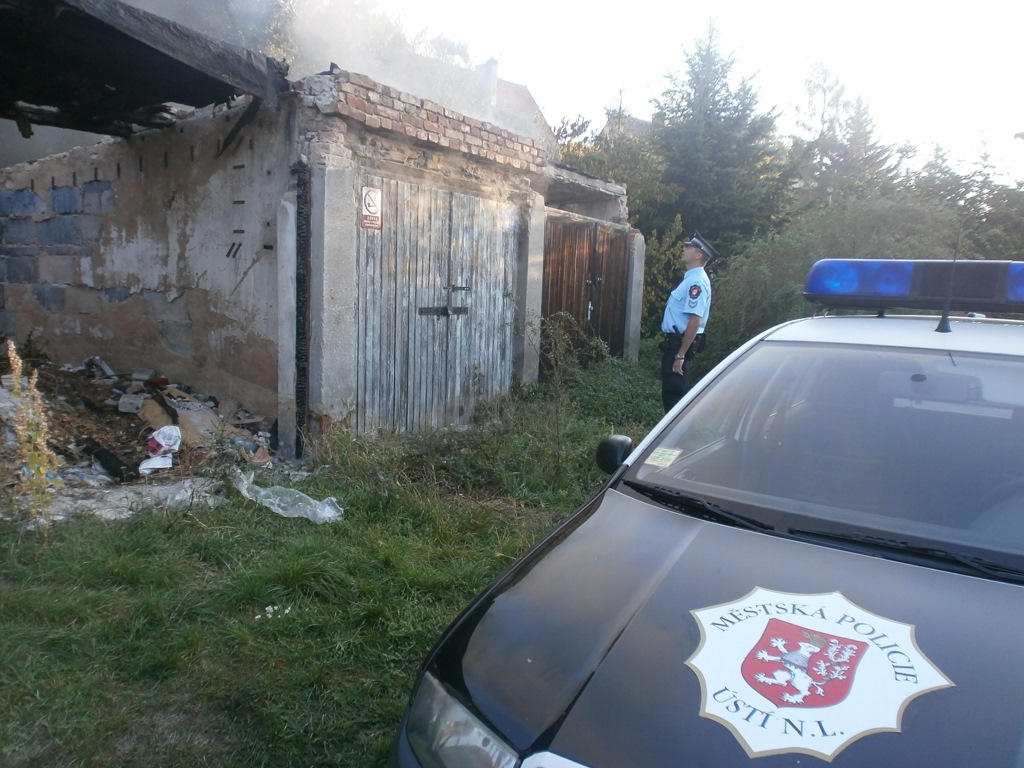 Dne 07.09.2013 v 07.25 hodin, byla na žádost operačního střediska vyslána hlídka strážníků do ulice Za Válcovnou, z důvodu oznámení občana, který nahlásil požár v tamní garáži, kde zřejmě někdo rozdělal oheň. Vzhledem k tomu, že vlastními silami strážníci nebyli schopni oheň uhasit, byli na místo přivoláni hasiči, kteří během hodiny požár uhasili. Celý případ si k dořešení převzala Policie ČR.