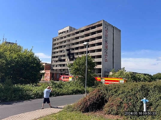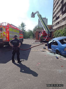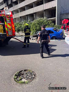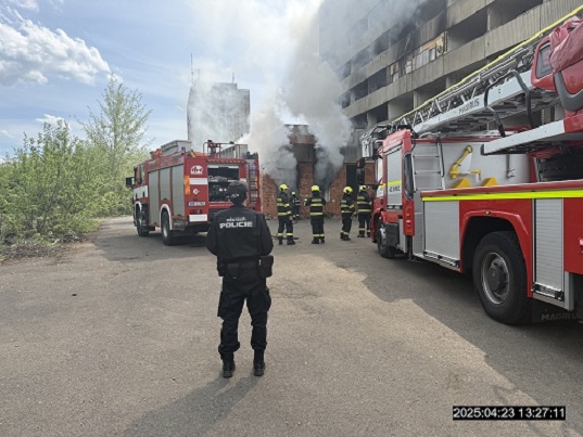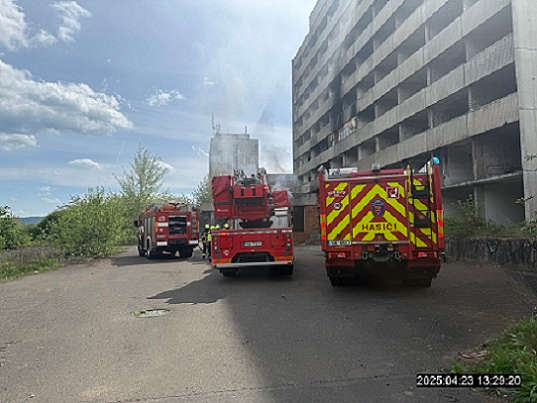 Dne 23.4.2025 v 13,20 hod., prováděla hlídka strážníků kontrolní činnosti v ulici Krušnohorská, kde zahlédla hustý, černý kouř, vycházející nad bývalým hotelem Máj v ulici Hoření. Při příjezdu na místo se před hotelem nacházely jednotky hasičů, které prováděly hasební práce. Od jejich velitele bylo zjištěno, že zde vzplál nahromaděný odpad. Na místě se dále nacházely hlídky Policie ČR a posádka vozidla zdravotní záchranné služby. Strážníci zabezpečovali hasební prostor proti vstupu nepovolaných osob. Celá alce se obešla bez zranění osob.