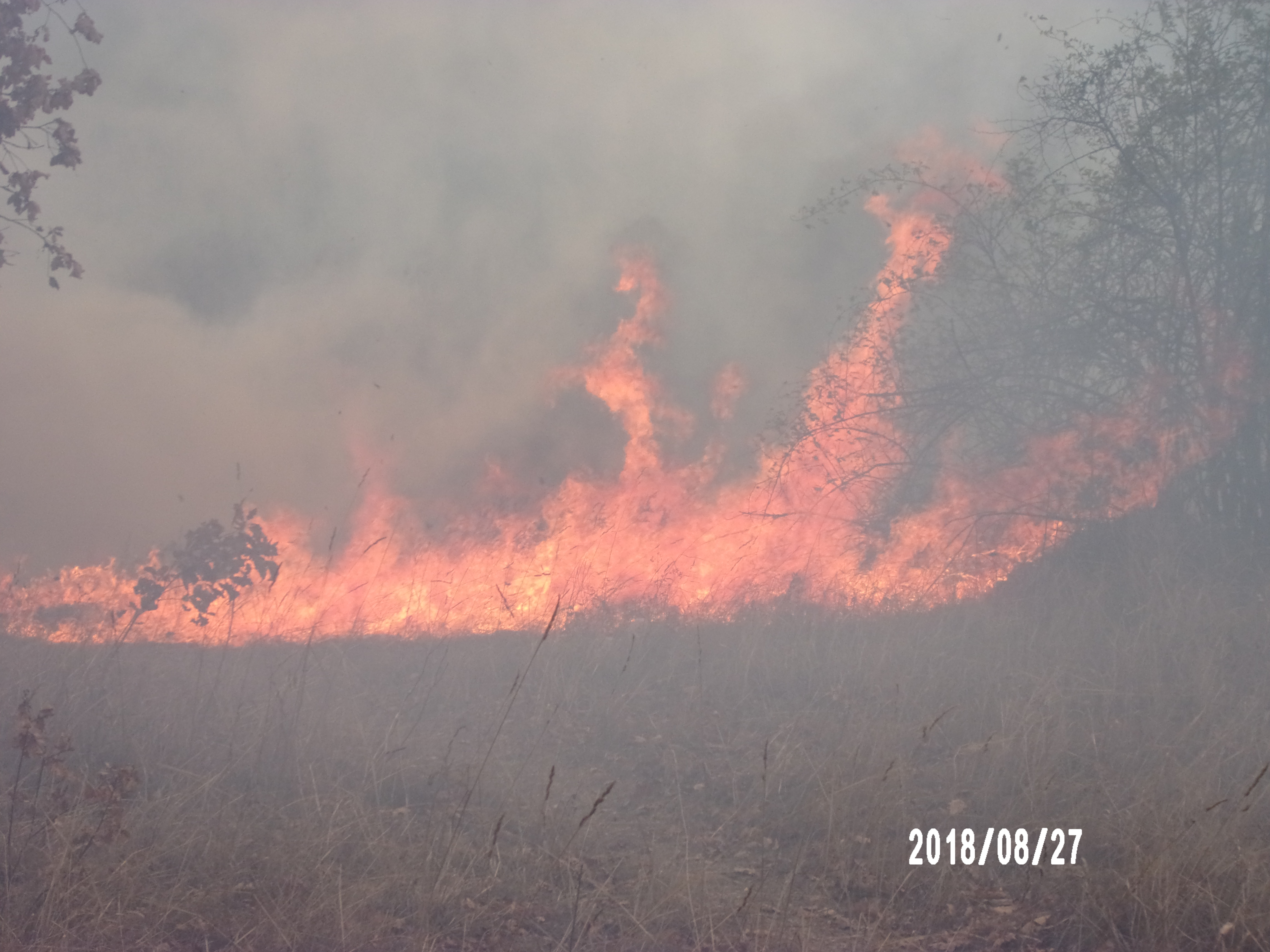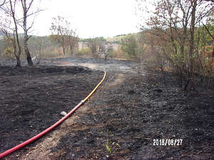 Dne 27.8.2018 v 16,05 hod., byl na žádost operačního střediska městské policie proveden výjezd strážníků do ulice Na Skalce, odkud na tísňovou linku městských strážníků telefonoval oznamovatel, který operátorovi sdělil, že u nedalekého lesa stoupá kouř. Hlídka na místě zjistila, že zde hoří travnatý porost a oheň se rozšířil do přilehlého lesíka. Strážníci na místo přivolali hasiče a po dobu likvidace požáru zabezpečovali místo proti vstupu nepovolaných osob. Příčiny požáru šetří Policie ČR.