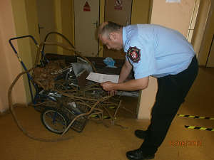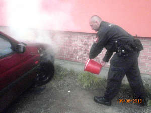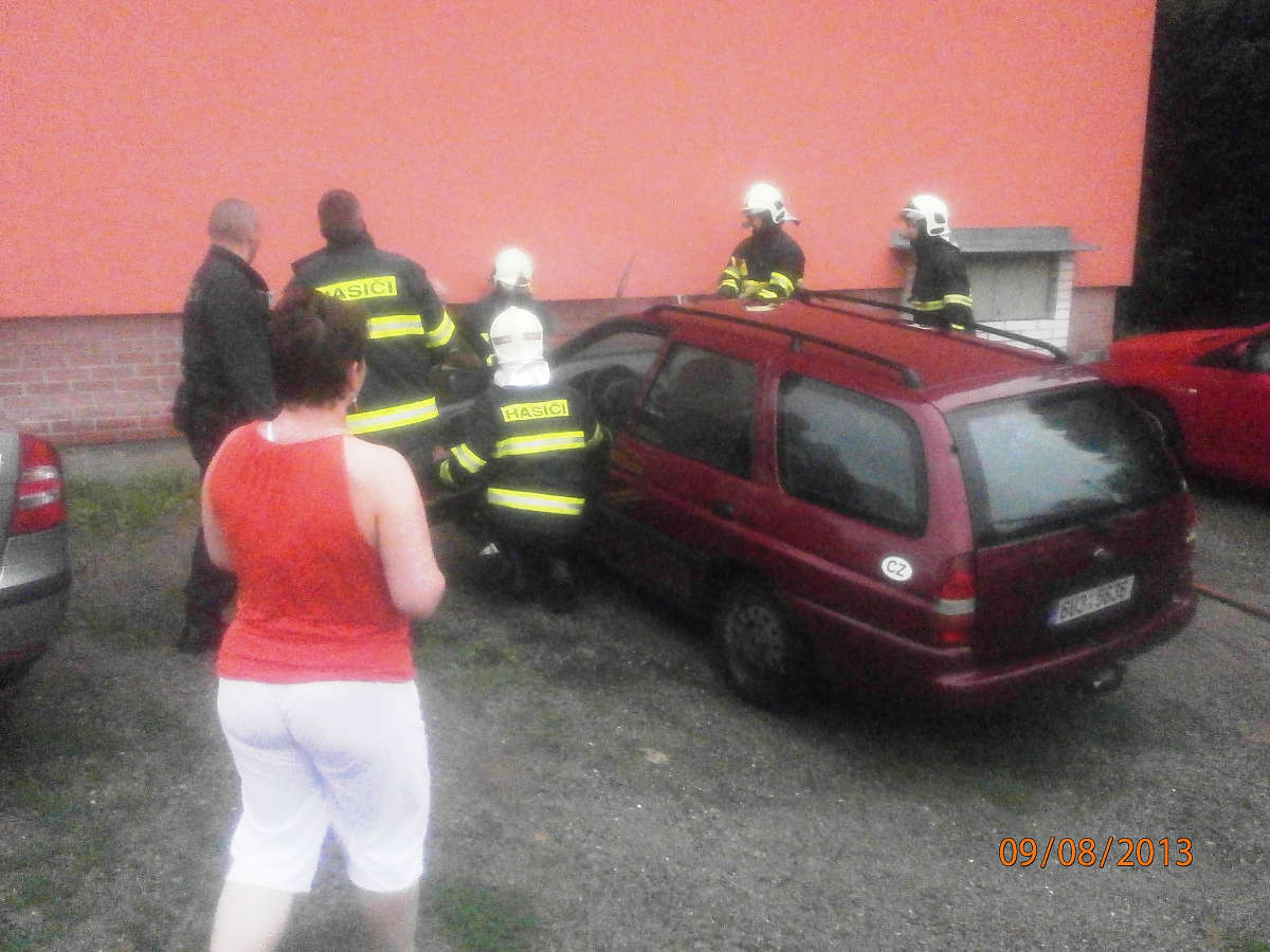 Dne 9.8.2013 v 19.05 byla vyslána hlídka strážníků do ulice Ve smyčce, na základě přijatého telefonického oznámení od občana, který uvedl, že zde hoří kolo u osobního automobilu. Po příjezdu hlídky na místo, bylo zjištěno, že u osobního automobilu hoří přední pravé kolo u spolujezdce. Strážníci se pokusili uhasit oheň vlastními silami, což se podařilo částečně ručním hasicím přístrojem a částečně kýblem s vodou, kterou jim poskytl občan, který celý zásah sledoval z okna svého bytu. Na místo byli přivoláni hasiči, kteří svými hasebními prostředky provedli celkové zahašení automobilu. Požár pravděpodobně vznikl od zkratu autobaterie vozidla.