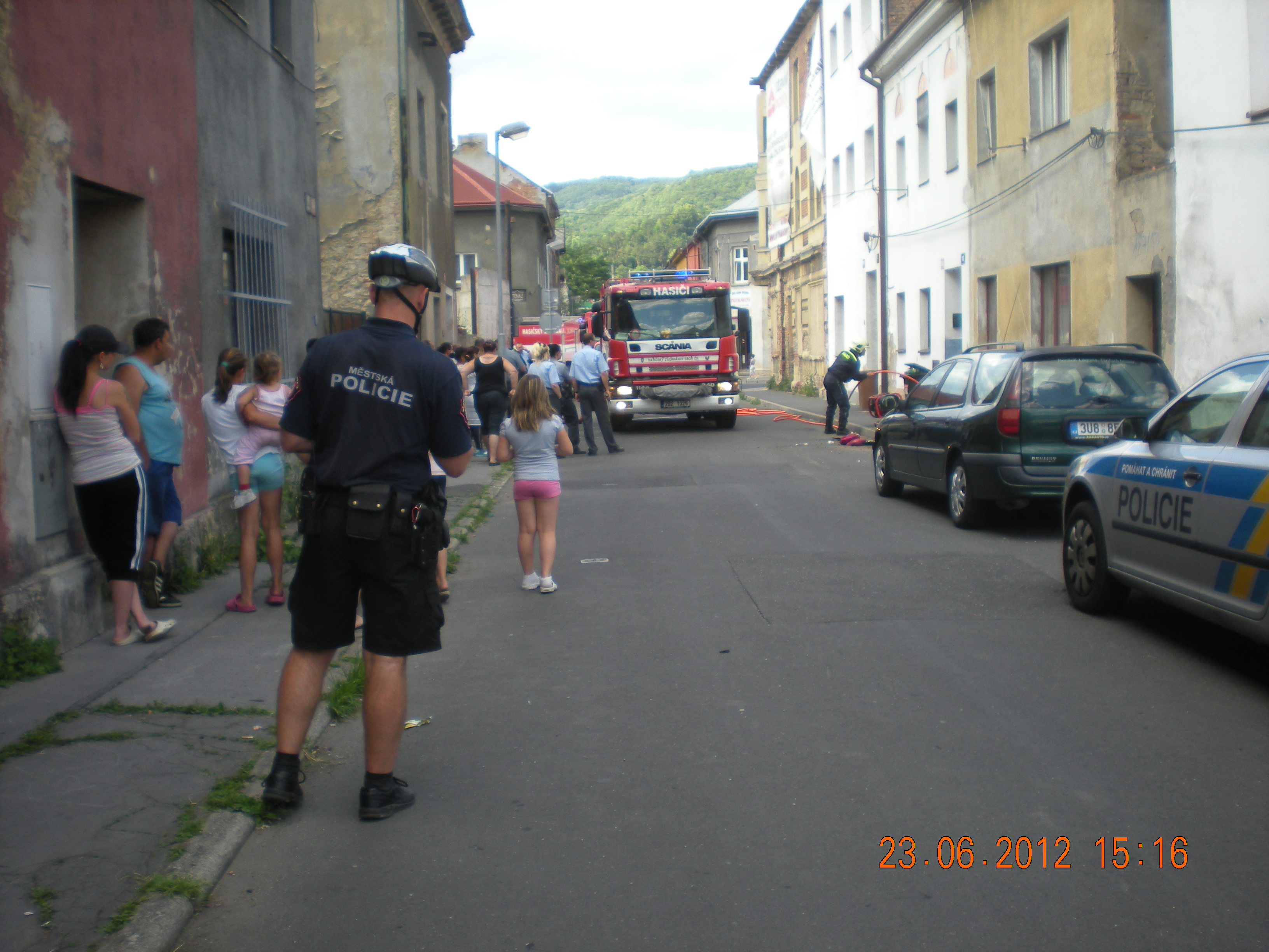 23.6.Cyklohlídka, která prováděla kontrolní činnost v obvodu Krásné Březno si v ulici Svádovská všimla kouře, který vycházel z prvního patra rodinného domu číslo patnáct. Na místo byli přivoláni hasiči, který oheň v krátké době zlikvidovali. Při požáru nedošlo ke zranění osob. Celý případ si převzala k dořešení Policie ČR.