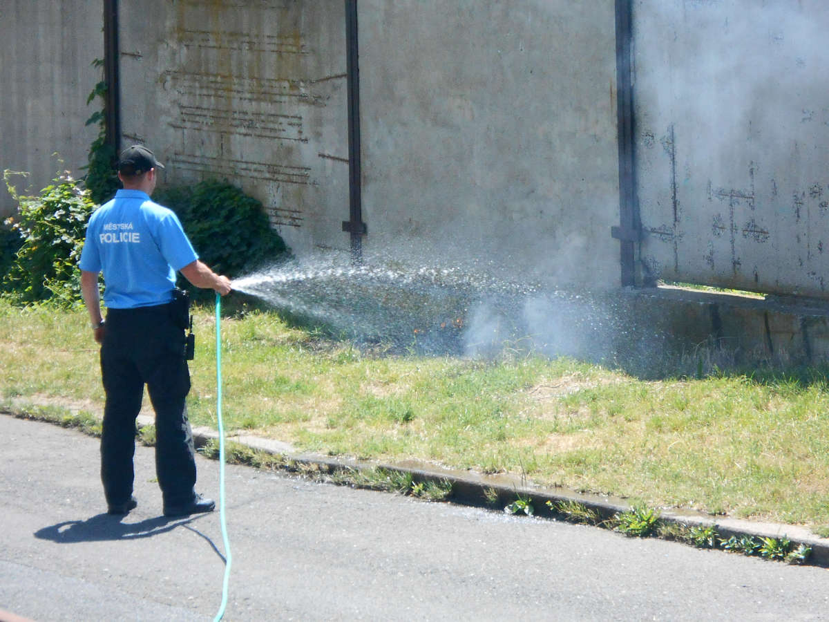 Strážníci hasili požír suchého travního porostu.