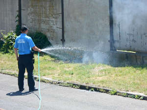 Dne 3.7.2014 v 14,20 hod., prováděla hlídka strážníků pochůzkovou činnost v obvodu Klíše, kde si v ulici U Jeslí všimla začínajícího požáru suchého travního porostu, který se šířil směrem k objektu místní opravářské firmy . Vzhledem k tomu, že oheň vznikl v blízkosti základny městské policie, natáhli strážníci hadici přímo od psovodů městské policie a oheň vlastními silami uhasili. Šetřením bylo zjištěno, že oheň vznikl zřejmě od nedopalku cigarety, který zde někdo odhodil.