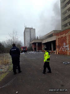 Dne 7.1.2021 v 08:40 hod., prováděla hlídka strážníků kontrolní činnost v obvodu Severní Terasy, kde si strážníci všimli, že z bývalého hotelu Máj v ulici Hoření vychází z prvního patra kouř. Na místo byli přivoláni hasiči a hlídka Policie ČR, která si po dohašení požáru celou věc převzala k dalšímu šetření. Strážníci zabezpečovali místo požáru proti vstupu nepovolaných osob.