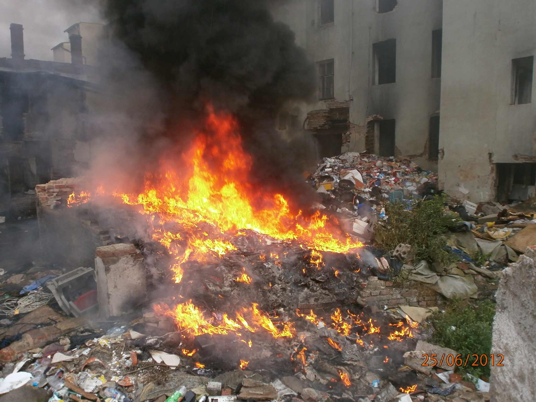 25.6. 16,55 hod. Hlídka strážníků, která prováděla pochůzkovou činnost v obvodu Předlice si v ulici Marxova všimla hustého a štiplavé hodýmu, který vycházel ze dvora domu č.18. Na místě hlídka zjistila, že zde hoří velké množství komunálního odpadu, které nelze uhasit vlastními silami, proto strážníci na místo přivolali hasiče a uzavřeli celé okolí proti vstupu nepovolaných osob.