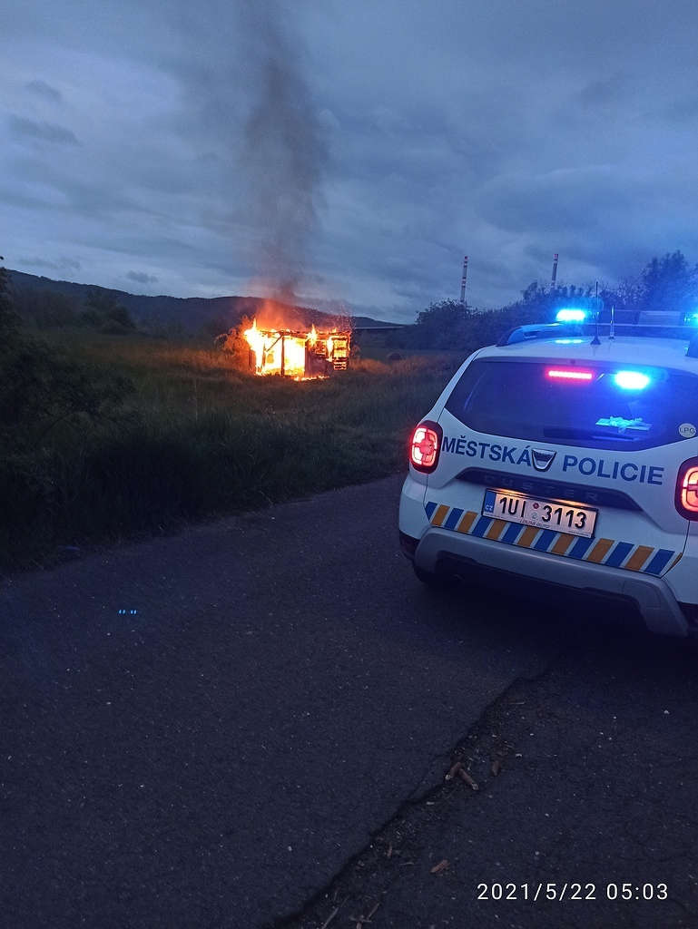 Dne 22.5.2021 v 05.15 hod., při kontrolní činnosti v obvodu Předlic, si autohlídka strážníků všimla v ulici Okresní Silnice černého kouře. Po příjezdu na místo hlídka zjistila, že zde hoří dřevěná chata. Strážníci okamžitě na místo přivolali hasiče, kteří požár uhasili. Během likvidace požáru, hlídka strážníků zabezpečovala místo proti vstupu nepovolaných osob.