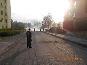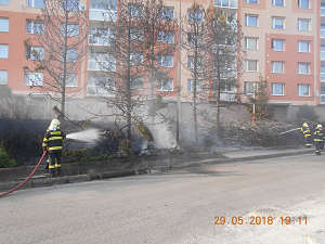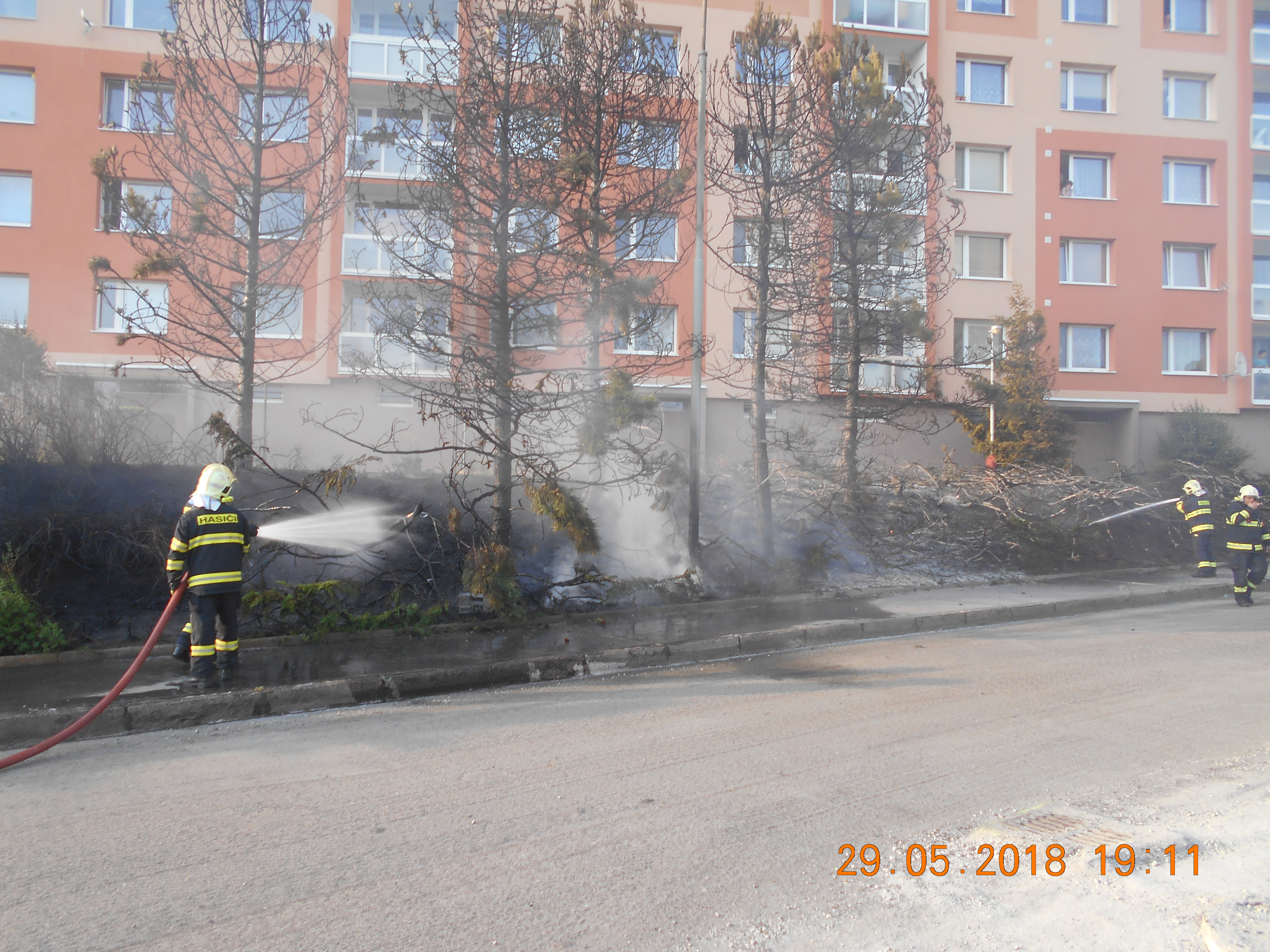 Dne 29.5.2018 v 19,10 hod., byl na žádost operačního střediska městské police proveden výjezd strážníků do ulice Kmochova – Rabasova z důvodu oznámení, že zde hoří travnatý porost. Hlídka celou událost oznámila hasičům, kteří požár během půl hodiny uhasili. Strážníci až do uhašení požáru prováděli zajištění celého prostoru, proti vstupu nepovolaných osob. Příčina vzniku požáru se vyšetřuje.