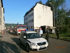 Dne 24.05.2012 v 18.40 hodin byla na žádost operačního střediska městské policie byly vyslány hlídky městských strážníků do ulice Marxova, kde dle oznamovatele měl hořet dům. Po příjezdu hlídek na místo bylo zjištěno, že v opuštěném domě č.p.5,v ulici Marxova hoří půdní prostory. Jedna z hlídek ihned provedla kontrolu domu se zaměřením na případný výskyt osob, které by mohly být bezprostředně ohroženy na životě v souvislosti s požárem. Druhá hlídka zajistila okolí domu proti vstupu neoprávněných osob, zatímco přivolané jednotky HZS likvidovaly požár. V 19.15 hodin byl zásah ze strany HZS ukončen kompletním uhašením požáru.